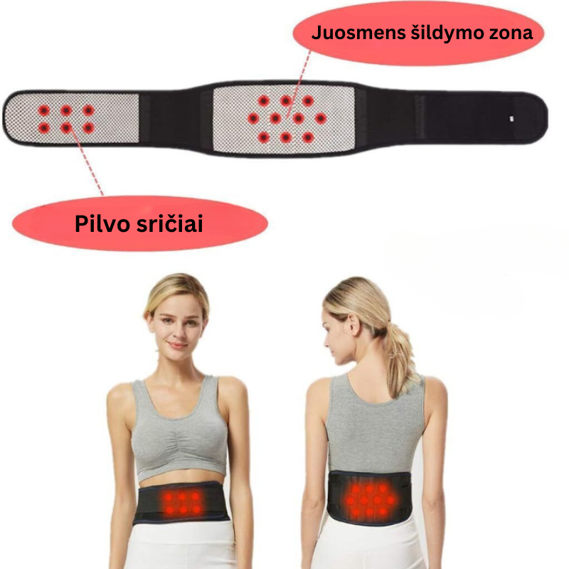 The belt uses self-heating technology and built-in magnets to generate soothing heat, improve blood circulation, and relax muscles, helping to naturally reduce back pain and stiffness.